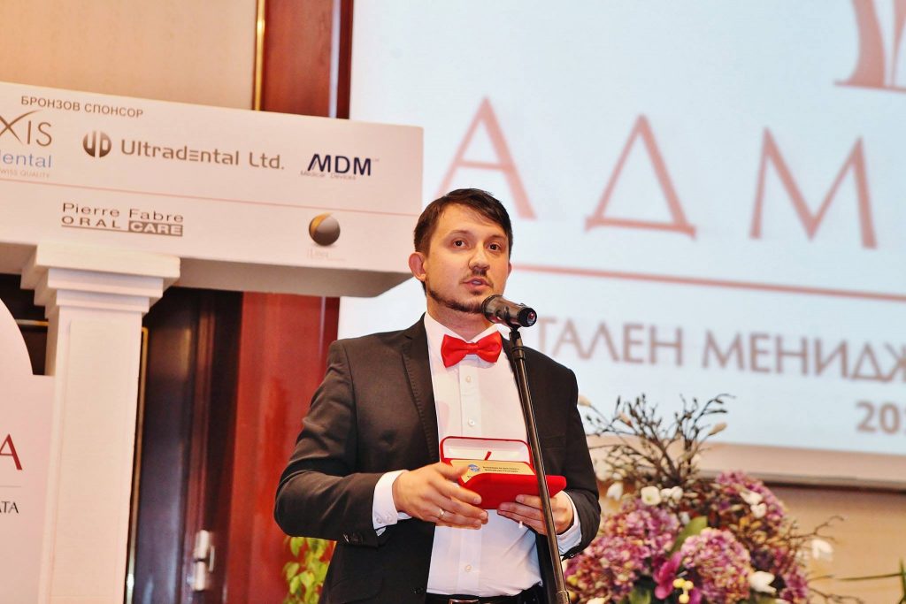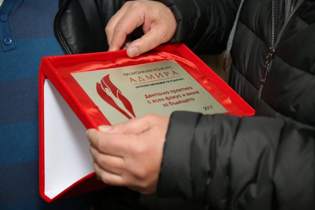 Искрено благодарни сме на журито в конкурса „Дентален мениджър на годината – Адмира 2017”! Самото отличие показва, че посоката ни е правилната, защото това са два от най-важните елементи от развитието на екипа ни – фокус и визия как трябва да се променяме.